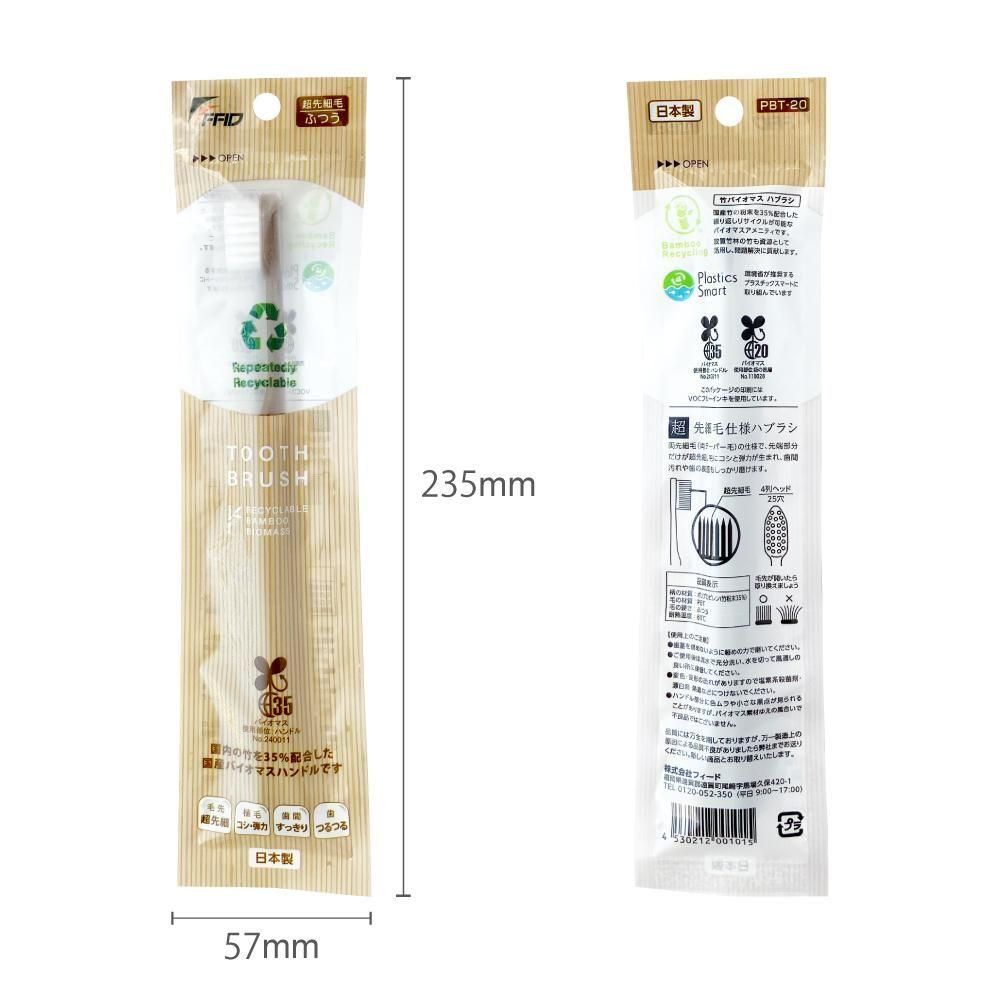 バイオマス歯ブラシ PBT-20-FBM ナチュラル 販売用 (200本)