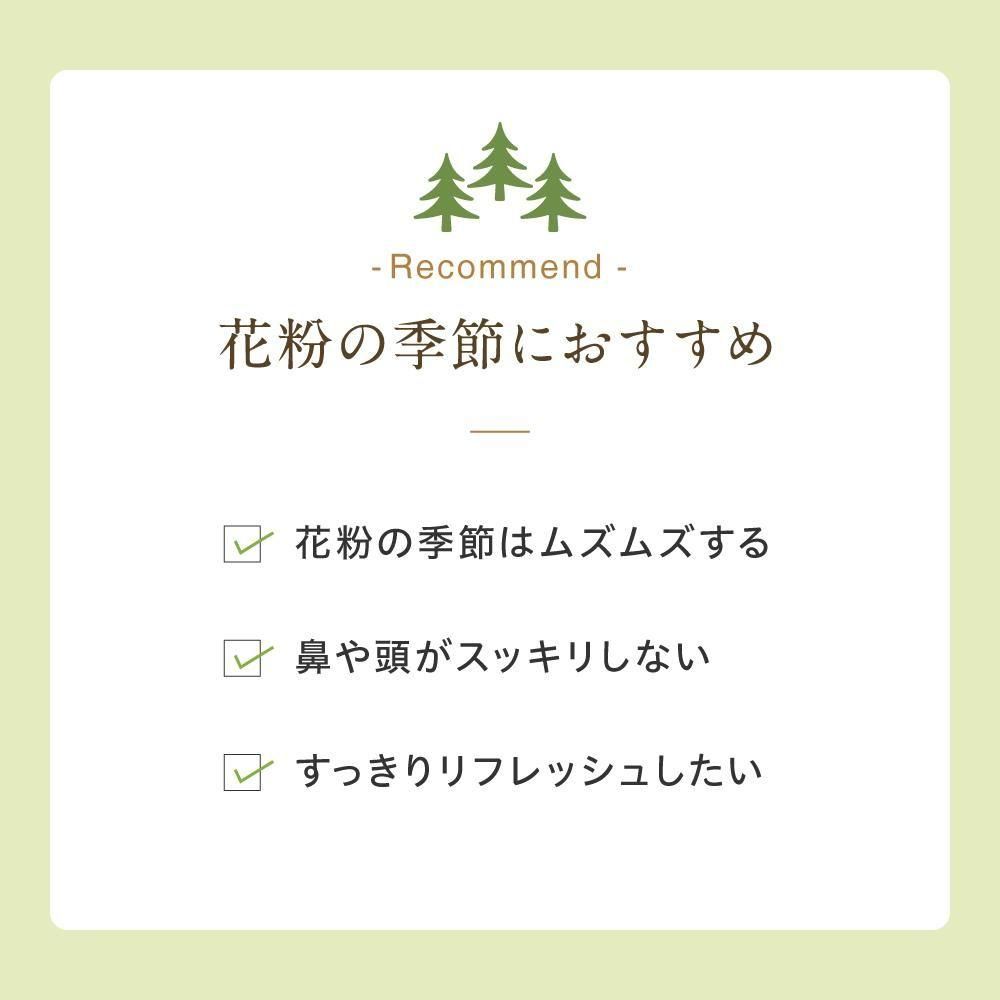 成分特徴 | 真正ラベンダー、ユーカリ、ペパーミント、ティートリー ●真正ラベンダー・・・気持ちを落ち着かせる ●ペパーミント、ユーカリ・・・リフレッシュさせクリアな気持ちにさせる ●ティートリー・・・殺菌効果・体を温める |