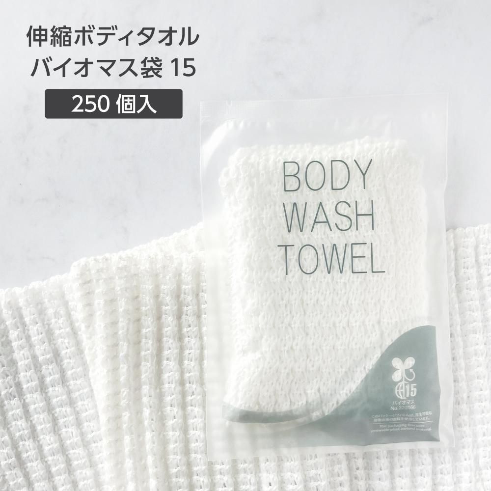 伸縮 ボディタオル 100cm バイオマス袋15 (250個)