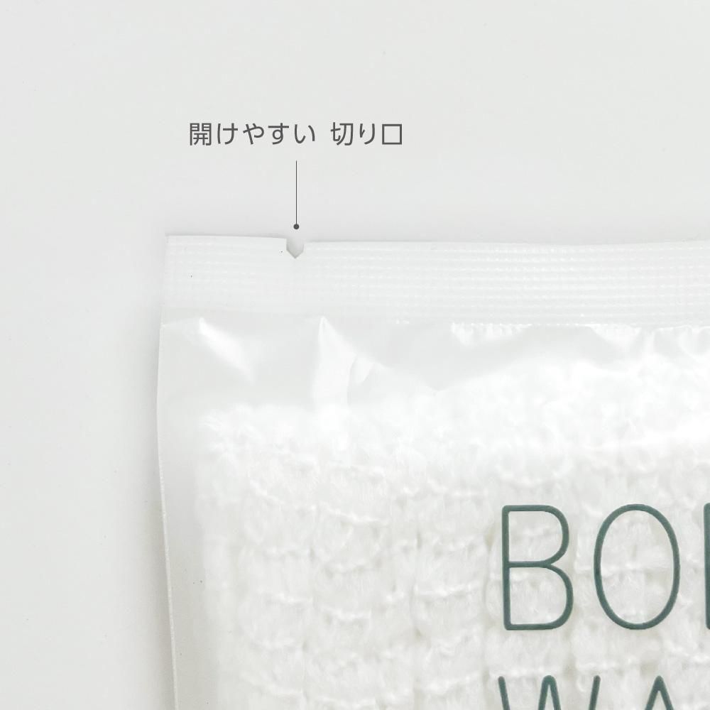引っ張ると最大100cmまで伸びる伸縮性バツグンのボディタオル。目の細かい生地で泡立ちが良く、ふわふわの泡で体を洗えます。バイオマス度15のパッケージで環境対策もバッチリです。