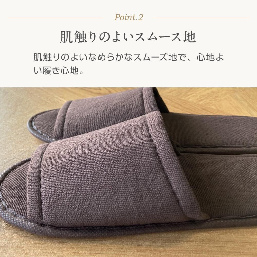 なめらかな肌触りが癖になるスムース地タイプのスリッパ。足の大きな海外ゲスト向けに30cmのXLサイズをご用意しました!しっかりした厚みの底が足の疲れを和らげてくれます。