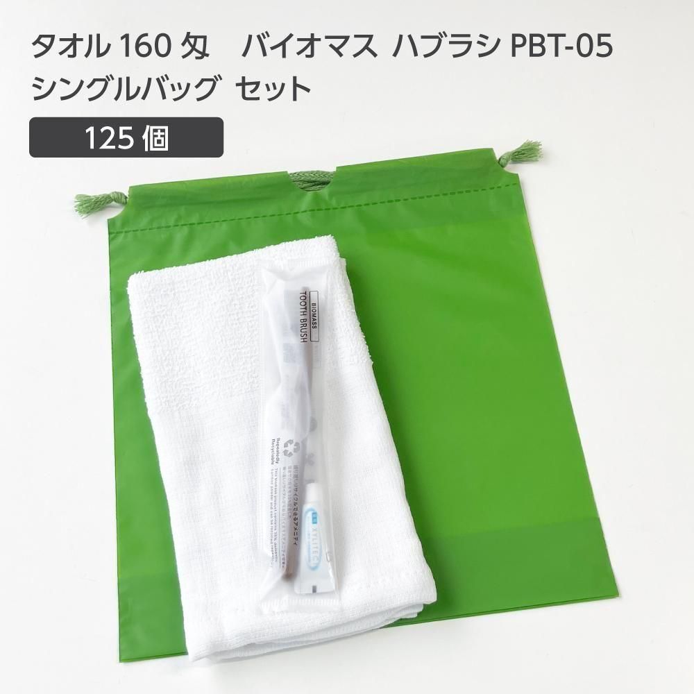 白タオル160匁とバイオマス歯ブラシがシングルバッグに入ったセットです