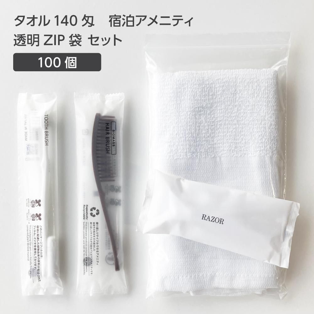 【受注生産】 タオル 140匁 宿泊アメニティ 透明ZIP袋 セット (100セット)