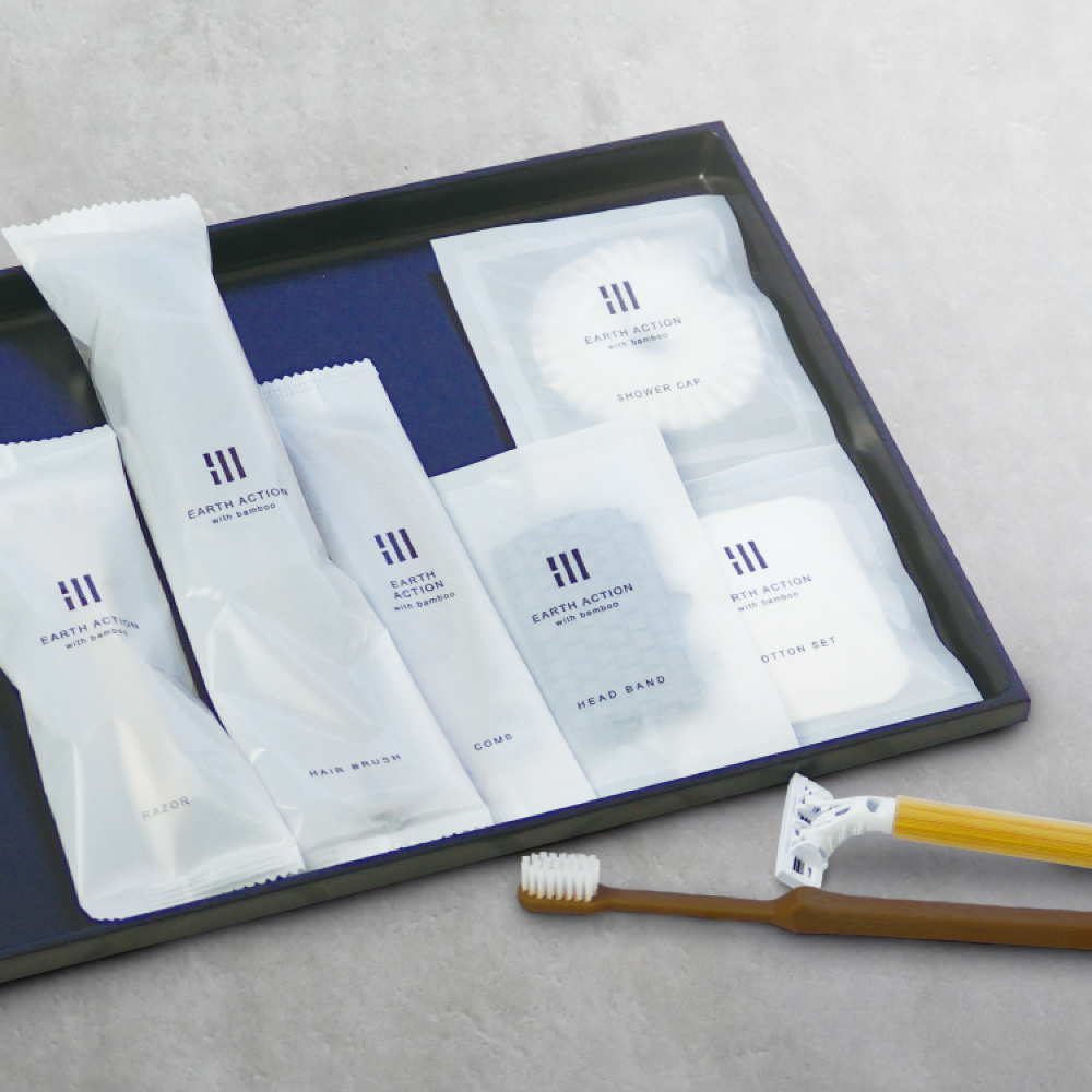 EAシリーズ(袋入り)は、竹バイオマスアメニティをバイオマス包材に