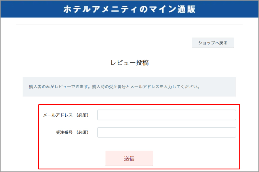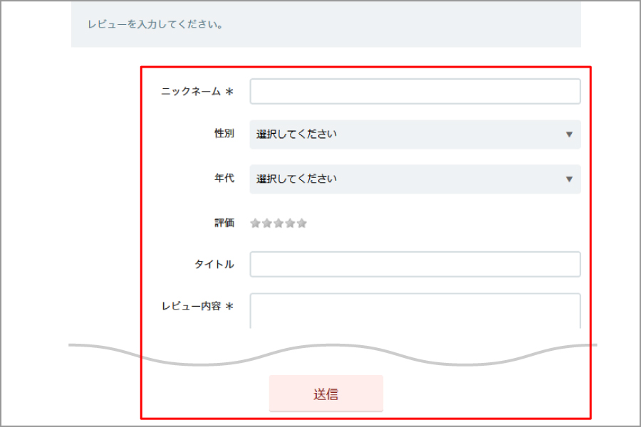 ③レビュー情報を入力後、「送信」をクリック、またはタップし、レビューを投稿してください。投稿したレビューが承認されますと、商品ページにレビューが掲載されます。