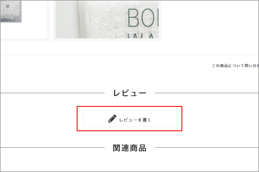 ①お買い上げいただいた商品のページから、「レビューを書く」をクリック、またはタップしてください。