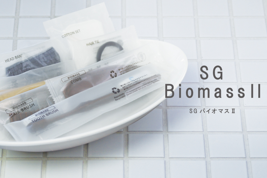SGBMⅡの「BM」は、バイオマスの略称。名前の通り、植物由来の原料を配合してバイオマス20を取得した包装フィルムを使用したパッケージシリーズです。